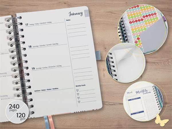 Naptár, spirál, A5, heti, 2025, kemény borító, SIGEL "Jolie", Let it flow