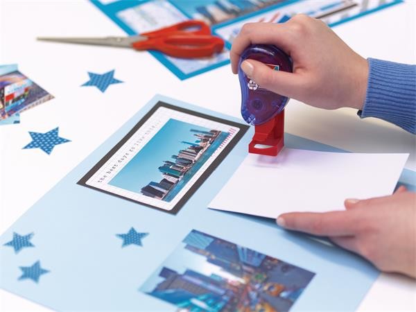 A tesa® ragasztóbélyegző okos megoldás fotók, jegyzetek vagy más könnyű tárgyak rögzítésére._x000D_
