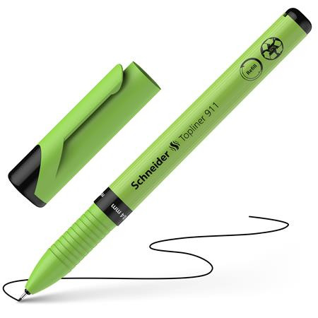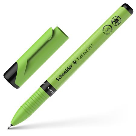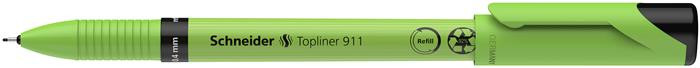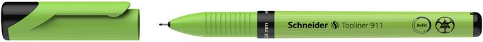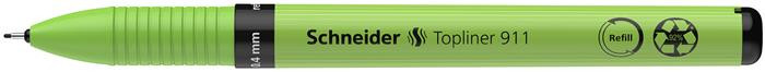 Tűfilc, 0,4 mm, cserélhető betétes, újrahasznosított tolltest, SCHNEIDER "Topliner 911", fekete