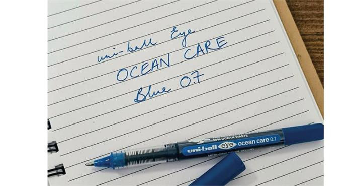 Fedezze fel az új Uni Eye Ocean Care roller tollat. A környezetbarát toll újrahasznosított műanyagból készül, amelynek egy része közvetlenül az óceánból származik._x000D_